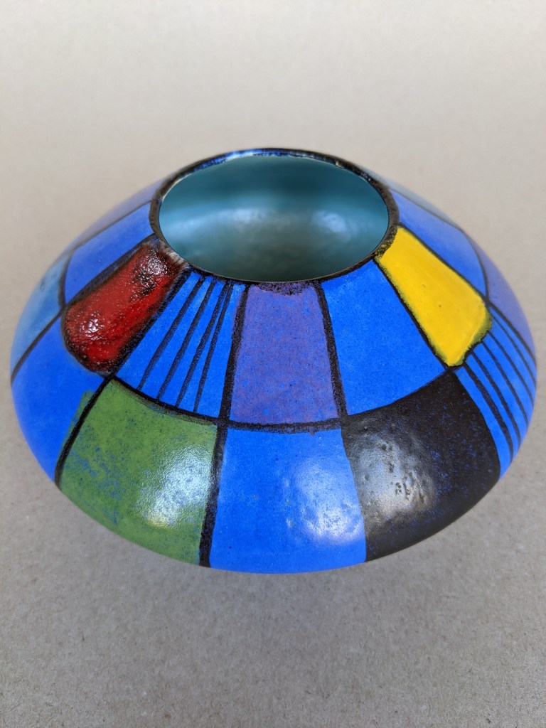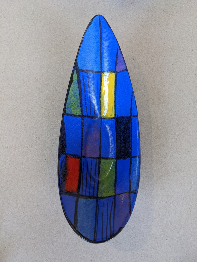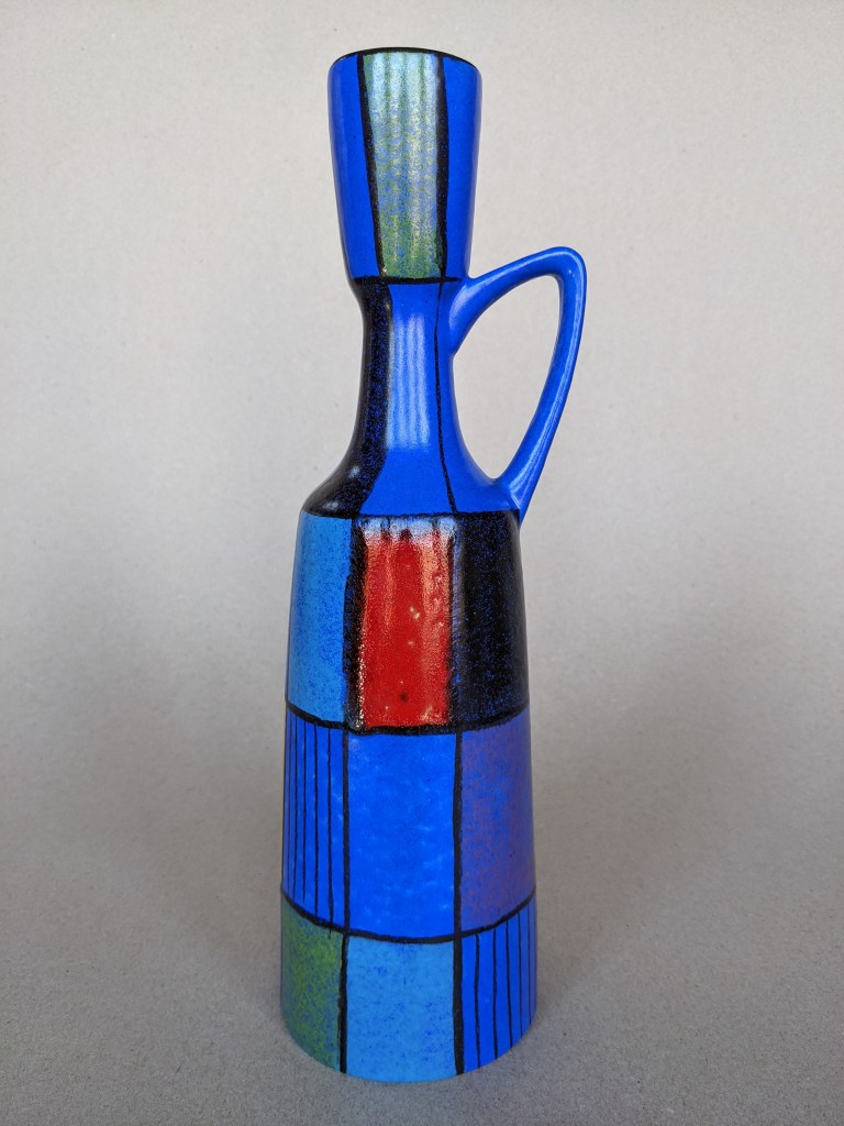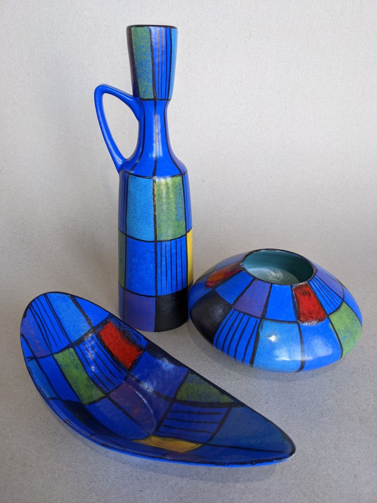 I love language, especially idioms — expressions whose meaning cannot be derived from the words used. Sadly, they seem to be disappearing in today’s all literal, nanosecond attention-span, homogenized communications. Many US-based idioms are being erased due to political correctness (try telling a new co-worker he is now the “low man on the totem pole”), but in both replacing and banning idioms we remove much of what makes a language identifiable with a specific culture. We aren’t robots (yet) and we shouldn’t have to speak like them… which is why the vases in this post are so much fun to me. Made in Germany by Bay Keramik starting in 1960, the vases are example of the “Reims” decor. Reims, the so-called “Coronation City” of France (due to having crowned 33 monarchs from 751 to 1825), has been known since the 13th century for its’ Rose Window. As the colors of the vases in this line are evocative of the colors in the Rose Window, the decor name makes sense. Ah, but what of the title of this post, you ask? Well, the French idiom “lécher les vitrines” (literally, “to lick the windows”) is their expression for window shopping — something which holds a delightful double meaning for this post. The first meaning is obvious: “Reims” and the Reims window. The second is easy, but slightly hidden. You see, in the days prior to the internet you physically went from one town to the next, one shop to the next, looking through dusty windows to see if there was anything interesting inside. Today the window is virtual — and isn’t zooming on an image just a different way of getting a closer look at your object of desire? I argue it is, which means “lécher les vitrines” — an expression from an older, but more vibrant linguistic period — might just survive to see the next century.
