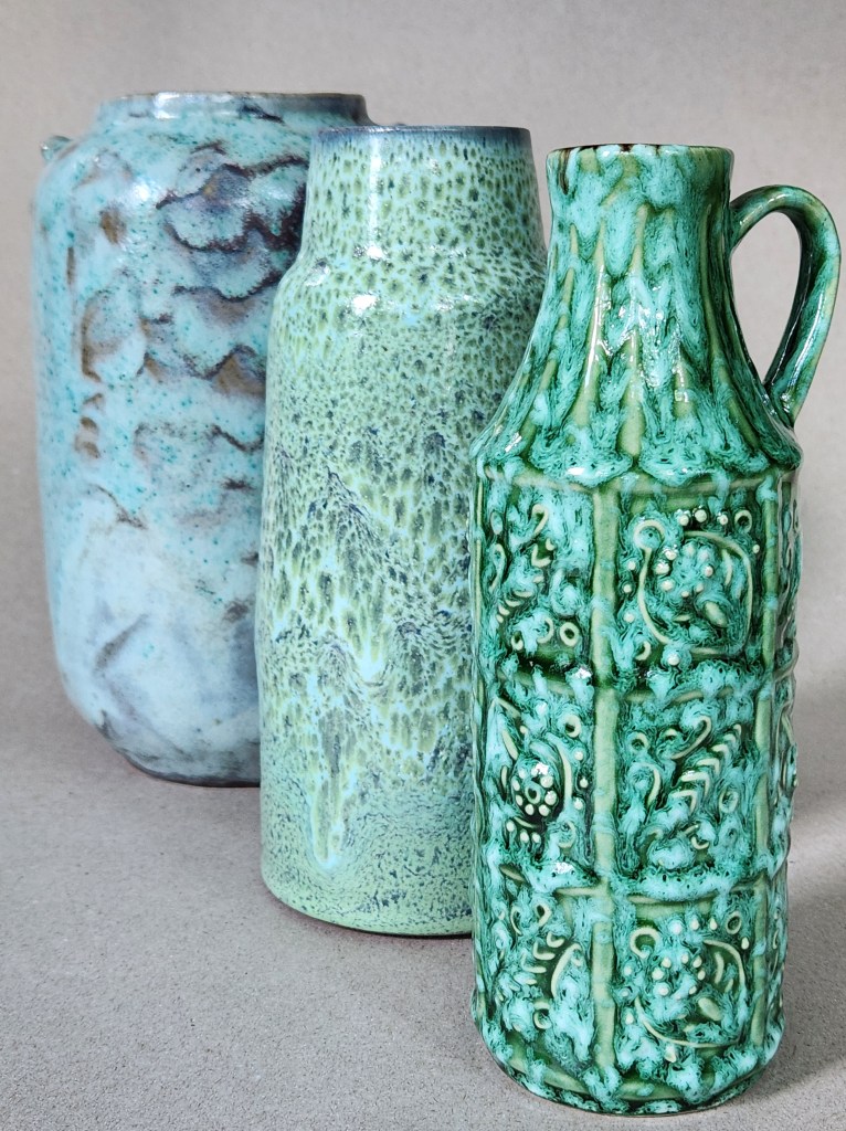 (L. to r.) Eugene Lion, 22.25cm; Gramann Römhild, 21cm; Bay Keramik 75-20, 20cm