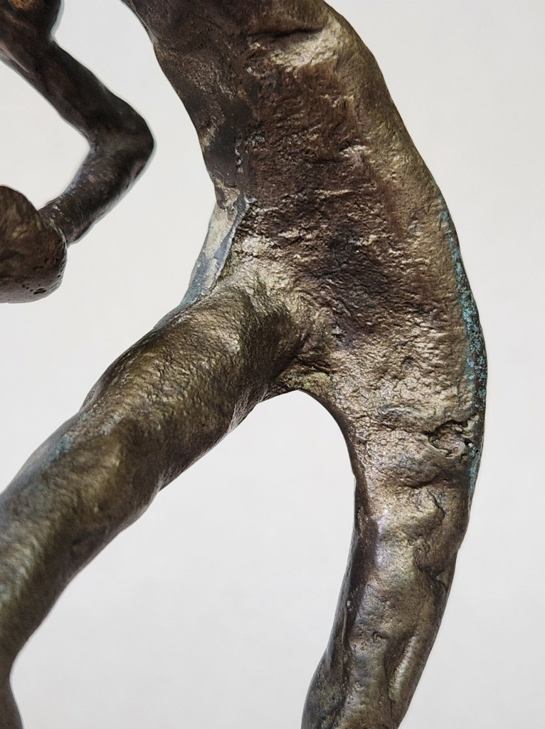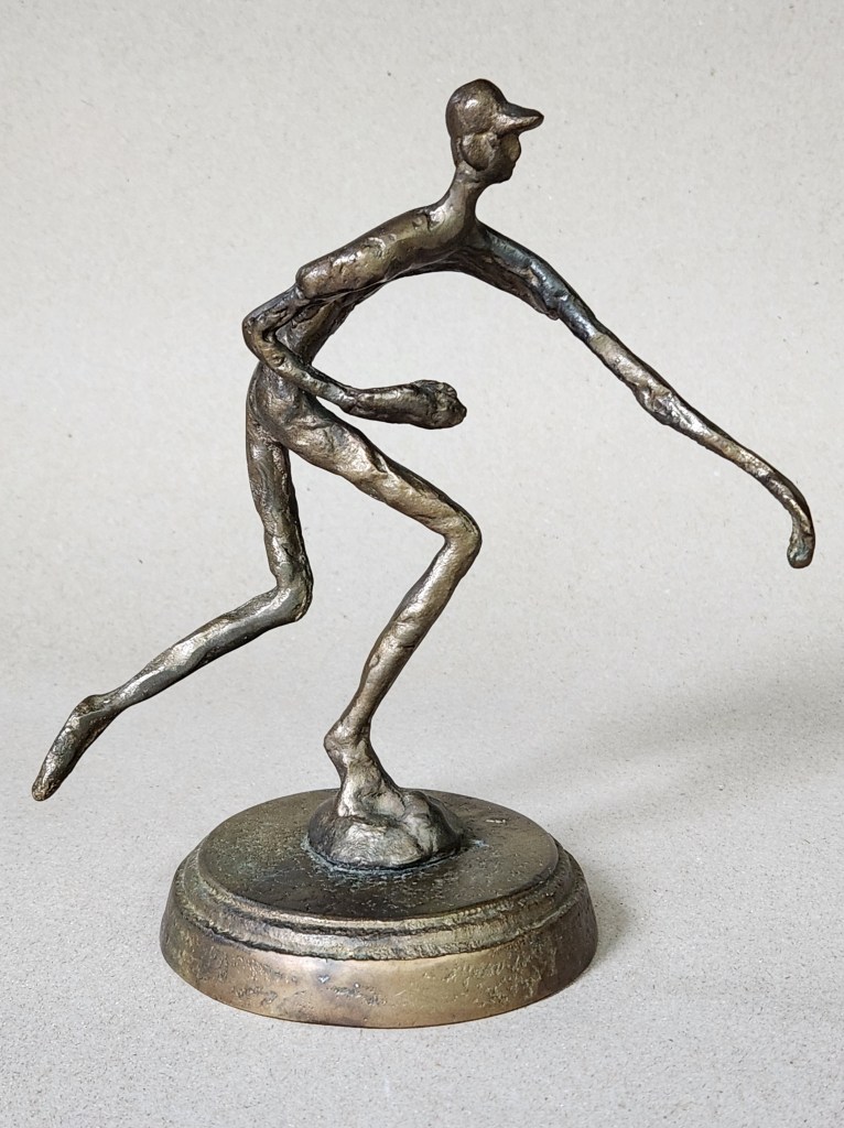 Ceramics are my stock in trade but I am always open to other Mid-Century objects, regardless of material, if they spark joy. Despite a complete lack of provenance, this lanky fellow’s wonderful fluidity, athleticism and focus made me smile and was thus an easy purchase. It’s ironic I should admire such a figure, as my childhood experience playing baseball was rather similar to that of Charlie Brown, i.e. a lot of strikeouts and poor fielding. (The enticing aroma of hot dogs wafting from the stand behind me in right field didn’t exactly help my concentration, to be fair.) Perhaps this figure brings me happiness because he is how I always wished I could have been on the baseball field… a sentiment several beleaguered coaches and my own father probably share!